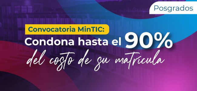 Estudie en la Escuela Colombiana de Ingeniería a través de la convocatoria 'Formación TIC para el Cambio: Posgrados' del Ministerio de Tecnologías de la Información y las Comunicaciones. A través de esta convocatoria, los colombianos pueden acceder a un crédito condonable de hasta el 90% del costo de la matrícula de programas de especialización.